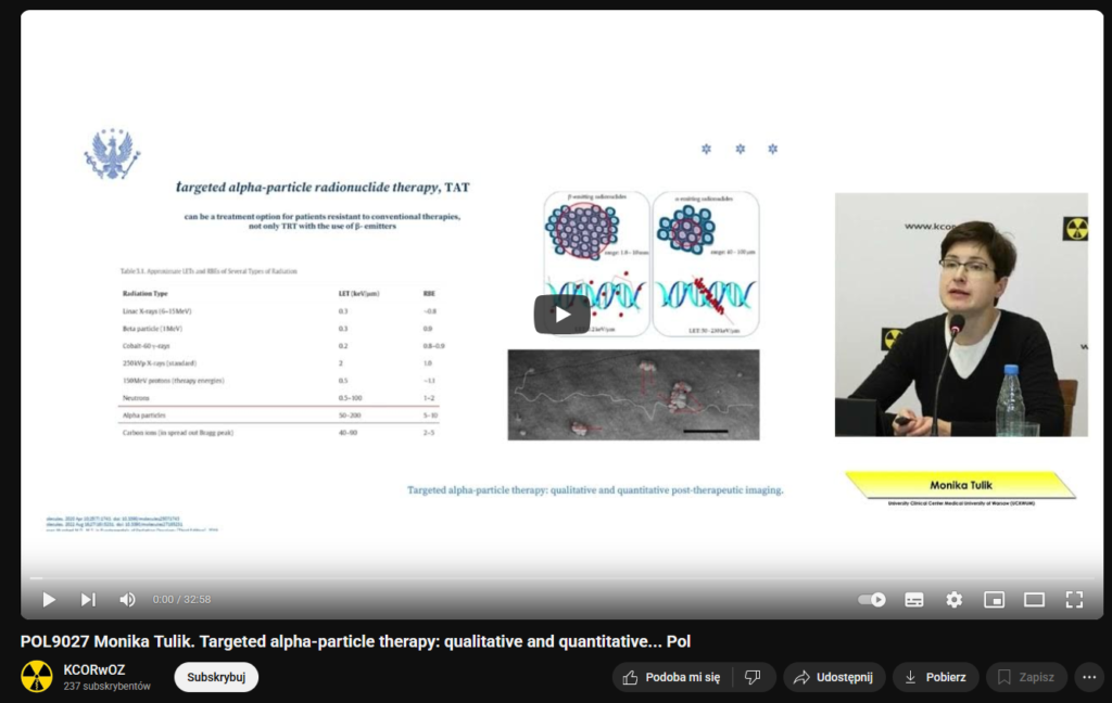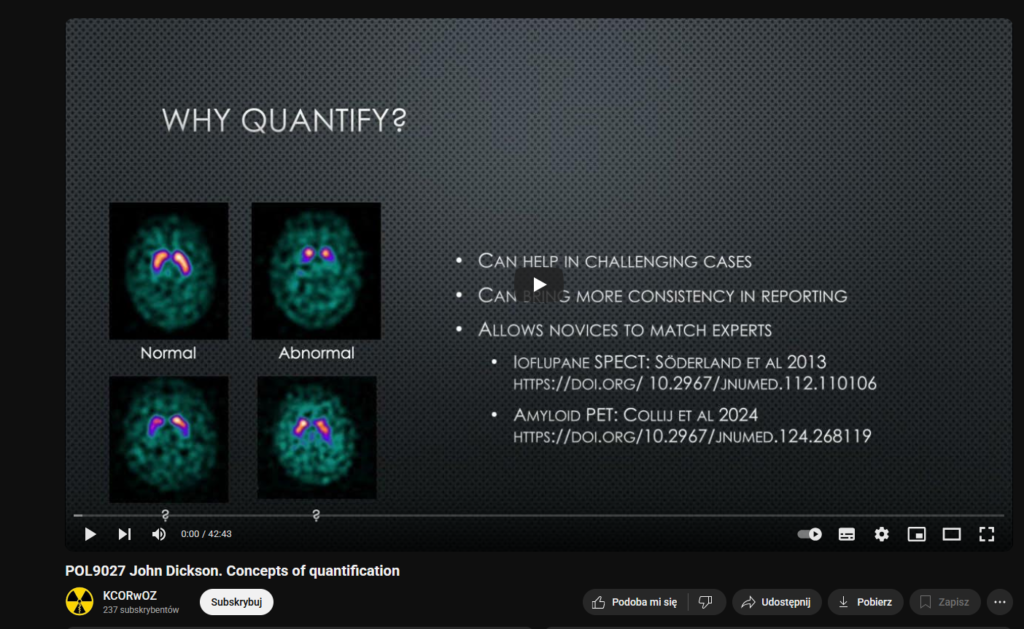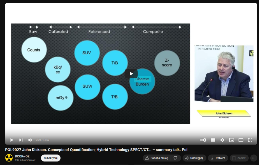 Opis: Wykład zrealizowany we współpracy z Międzynarodową Agencją Energii Atomowej w ramach projektu IAEA TC POL9027 „Kultura bezpiecznego stosowania promieniowania jonizującego oraz doskonalenie systemu QA/QC w pozytronowej tomografii emisyjnej w Polsce” i wygłoszony w trakcie warsztatów pt. „Analiza ilościowa w obrazowaniu hybrydowym” w dniach 2-3 grudnia 2024 r.
