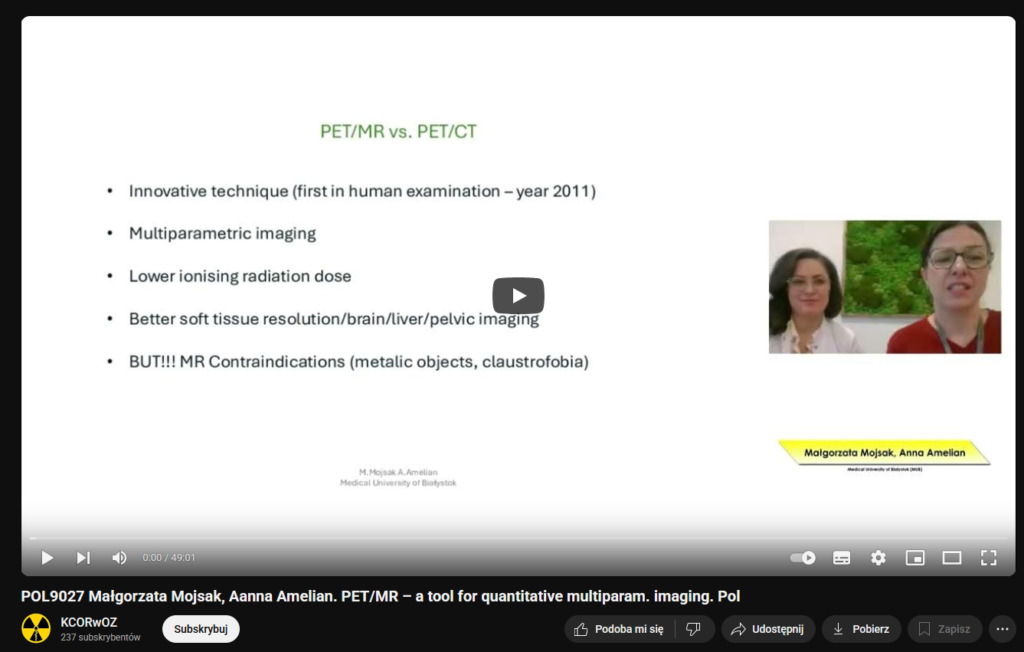 Małgorzata Mojsak, Anna Amelian „PET/MR – narzędzie do ilościowego obrazowania wieloparametrycznego” (oryg. PET/MR – a tool for quantitative multiparametric imaging)